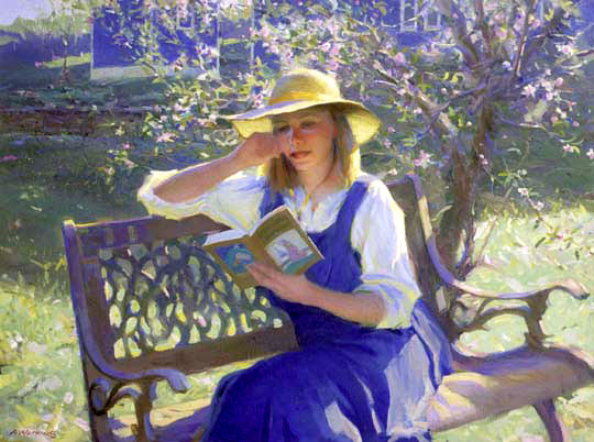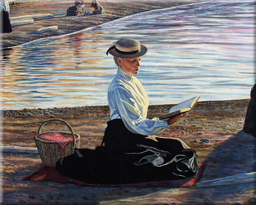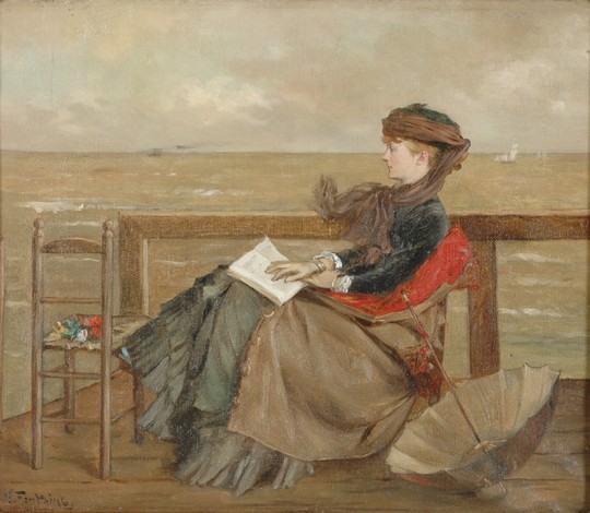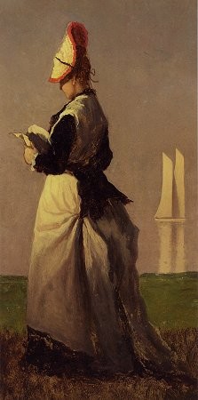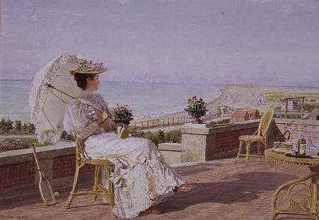 Et tandis qu’elle regarde au loin, sous son chapeau et sous son ombrelle, son cœur se met à battre plus vite. Serait-ce lui au loin?