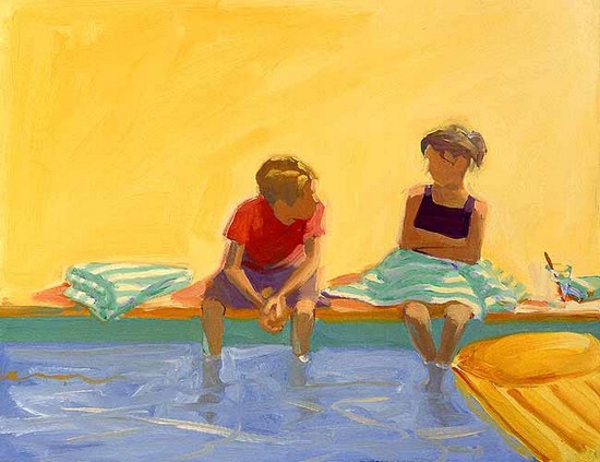 La petite lectrice de Sheldon Greenberg devait lire quand le jeune garçon est venu s’asseoir à ses côtés pour que le livre soit resté à côté d’elle. Est-elle déjà à l’âge des premières amours de vacances?
