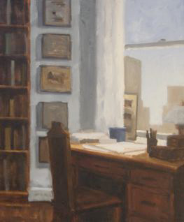 Le bureau est tout installé, grâce aux soins de l’artiste de Joan Griswold. Il suffit juste de vous asseoir, d’aller voir la toile de cette semaine et de vous laisser porter par ce qu’elle vous racontera. Je ne validerai les histoires que dans 48 heures. Vous avez donc amplement le temps, si l’aventure vous tente…