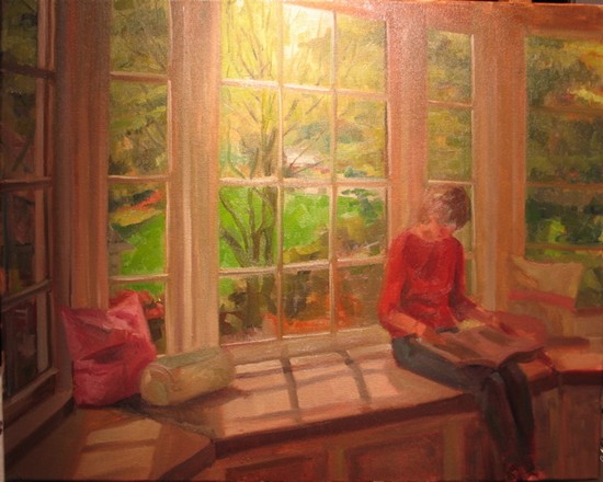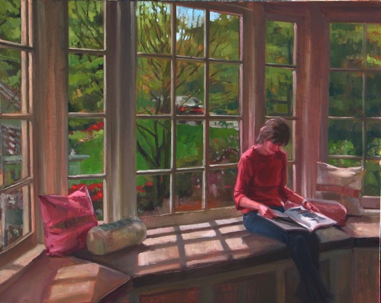 C’est le merveilleux artiste Jason Waskey, qui a notamment peint de nombreux personnages en train de lire – que vous avez vus ici et que vous aurez l’occasion de découvrir plus tard – qui nous fait basculer d’une journée à l’autre. Pour que nous puissions continuer d’aller avec bonheur d’une fenêtre à l’autre et pour le plaisir d’ajouter ce petit envoi de Reine, un extrait de L’art d’être grand-père de Victor Hugo intitulé Fenêtres ouvertes :