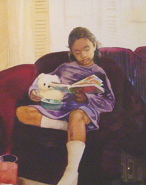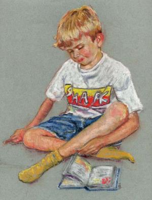 Les enfants sont en vacances depuis quelques heures pour une semaine. Je me doutais bien qu’ils passeraient par chez moi, en commençant par la petite lectrice de Rebecca Land Soodak. En effet, voilà quelques jours que je la croise et elle me regardait avec l’air de quelqu’un qui trame quelque chose. Elle est donc arrivée avec un livre intitulé Mots d’enfants, qui réunit quelques jolies perles et signé Jean-Claude Huriaux. « Pour t’aider », a-t-elle dit. Ce sont donc des mots d’enfants (tirés de ce livre et d’ailleurs) qui accompagneront les toiles consacrées aux jeunes lecteurs et lectrices de cette fin de semaine. Ce qui devrait vous faire sourire. Je crois.