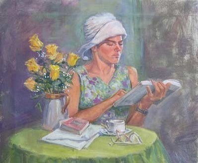 Mais qui est donc cette dévoreuse de livres, qui va d’un livre à l’autre, peinte par l’artiste canadien Robert Amirault? Sauriez-vous quelque chose sur elle que nous ignorons tous?