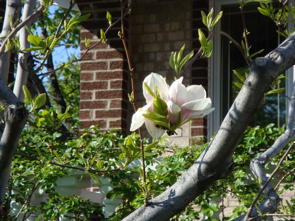 Parce qu’aujourd’hui c’est doublement son anniversaire, le vrai, et le jour où rentrent de vacances nos parents – qu’elle va chercher à l’aéroport tout à l’heure, je lui offre ces roses cueillies par l’appareil de Denise, pour la faire patienter un peu. Les siennes vont éclore dans quelque temps!