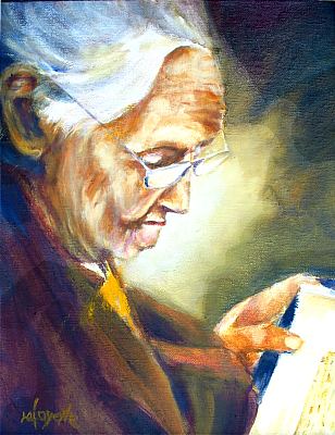 Mon premier cheveu blanc à l’âge de 14 ans annonçait la couleur des années à venir. J’allais tenir de des deux grands-pères qui avaient la tête grisonnante à 28 ans. Et en effet, à 28 ans, j’avais déjà pas mal de cheveux blancs au milieu de ma tignasse. Signe de sagesse, disait-on… Oui, oui, sûrement! Lali sage? Enfin, tout ça pour dire qu’il y a sept ans, à quelques jours après, alors qu’il ne restait plus que quelques cheveux foncés au milieu du blanc, et convaincue que j’allais un jour devenir une vieille dame à qui le blanc irait aussi bien qu’il sied à la lectrice peinte par Patricia Warren Roberts, j’ai décrété que j’avais encore le temps d’être brune avant d’avoir la chevelure totalement blanche. Si bien que chaque mois, je couvre les traces de ma sagesse… Et en ce jour de mon anniversaire, j’ai décidé de faire place à ces dames aux cheveux blancs. Pour que, peut-être, elles m’inculquent un peu de ce que j’ai dissimulé.