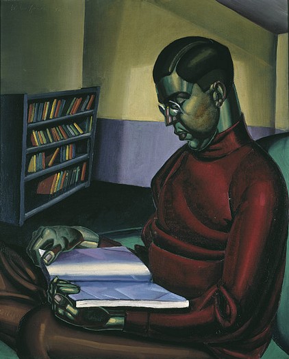 À quoi peut bien rêver le lecteur du peintre italien Romeo Mesisca en ce soir de pleine lune? À tous ces mots lus au fil des ans? À ceux qu’il écrira peut-être? À celle qu’il aime?