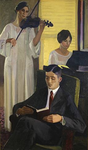 Qui sont-elles? Qui est-il? Quelle est cette musique qu’elles interprètent? Quel livre lit-il? Voilà de quoi aborder la toile de ce dimanche afin de la raconter en vos mots. Et cela sans savoir ce que les autres ont pu écrire avant vous puisque les commentaires ne seront pas validés avant sept jours.