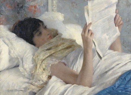 Nous voici à nouveau dimanche. Le premier de novembre, à l’heure où nous avons reculé montres et horloges cette nuit. À l’heure où le soleil s’est levé plus tôt et où il va aussi aller au lit plus tôt. À l’heure où certains, devant leur bol de café, parcourent les pages du journal afin de savoir ce qu’ils feront de ce dimanche, comme semble être le cas de cette lectrice peinte par Adrian Tans. Une lectrice pour le moment sans histoire. Une lectrice qui attend que vous lui inventiez une vie. Une lectrice qui attend vos mots, lesquels patienteront jusqu’à dimanche avant de vous être livrés en bloc. Une toile qui n’attend que vous pour déployer ses ailes.
