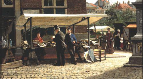 Quand le bibliophile peint par Theodorus Ludovicus Mesker a découvert, au hasard de ses promenades chez les bouquinistes, les Trésors des racines pataouètes de Roger Bacri, et du coup appris que le pataouète, c’est cette langue colorée qu’on parle en Algérie, mélange de français naturel, d’espagnol, d’italien, de grec, de provençal, d’arabe et de judéo-arabe, il s’est empressé de le feuilleter.