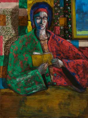 Or, j’ai appris qu’elle pas que Roumaine, mais plus particulièrement originaire de Transylvanie, laquelle a été unie à la Roumanie le 1er décembre 1918, d’où le fait qu’elle arborait du bleu, du jaune et du rouge. Ce qui m’a donné l’idée de vous offrir en ce dimanche des proverbes roumains présentés par des lecteurs et des lectrices vêtus de ces couleurs, comme celle peinte par José Marques Campao – ou des scènes livresques où ces trois couleurs seront présentes – en commençant par celui- ci : Un anneau du plus bel éclat ne corrige pas le défaut de l’ongle.