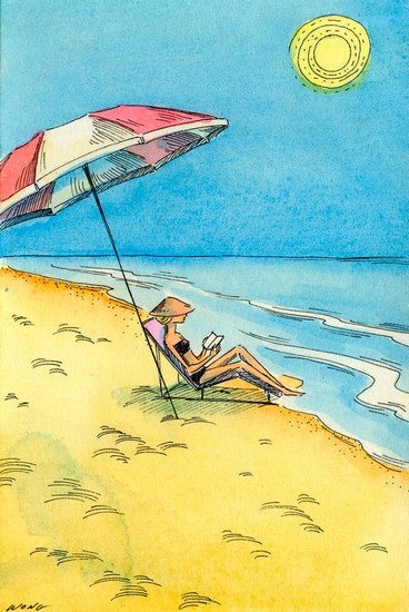 Ce qui m’a donné l’idée d’inviter des lecteurs et lectrices lisant sur la plage, notamment celle-ci, imaginée par Karine Daisay, afin de passer un dimanche à plage grâce à des citations où il en est question, au sens propre comme au sens figuré.