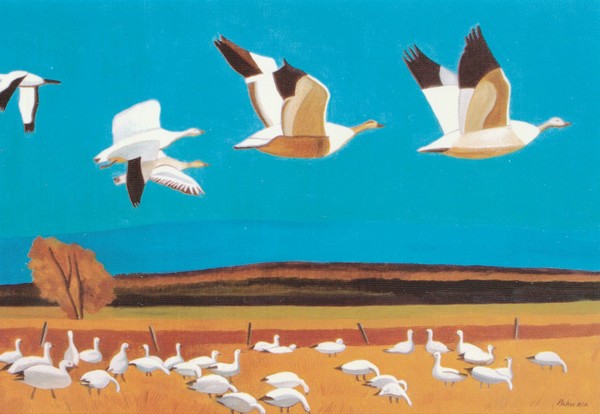 Des cartes si belles et si colorées que j’ai choisi d’en partager la plupart aujourd’hui, en commençant par celle-ci, ayant pour titre Les grandes oies blanches.