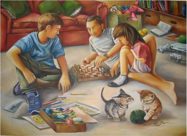 C’est sur un tableau du peintre néerlandais Jan Sluijters que mon choix s’est arrêté, lequel met à l’honneur Jan, Rob et Liesje, ses enfants. Il est donc à vous pour une semaine, car aucun commentaires ne sera validé avant dimanche prochain. Vous avez donc amplement le temps de vous pencher sur cette scène et d’écrire quelques lignes.