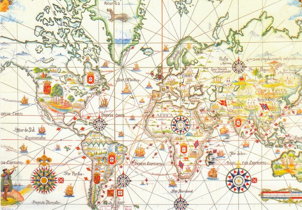 C’est lors d’une récente visite au Musée de la Marine de Lisbonne qu’Armando a déniché cette très belle carte du monde sur carte postale. Aura-t-il quelque anecdote à nous raconter à propos de celle-ci? Je le souhaite.