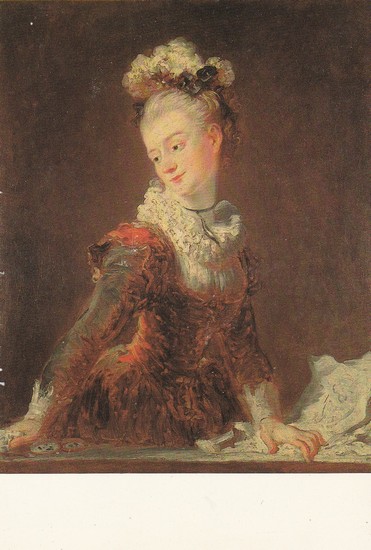 Je n’avais jamais entendu parler de Marie-Madeleine Guimard avant de recevoir cette carte postale reproduisant le tableau de Jean-Honoré Fragonard qui a pour titre Portrait dit de la Guimard. Et pourtant, elle fut plus qu’importante pour les artistes de son époque, notamment Fragonard lui-même. Il était temps que j’apprenne son existence!