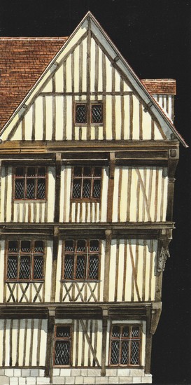 Une maison à pan de bois, une autre illustration de Maurice Pommier, cette fois pour le Guide Gallimard Eure.