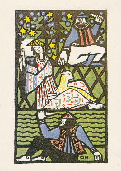 Tant qu’on ne connait pas le titre d’un tableau, parce qu’il est écrit dans une autre langue que le français et l’anglais, on peut imaginer bien des choses. Mais, en ce qui me concerne, pas du tout quelque chose qui puisse faire référence au titre de cette toile d’OSkar Kokoschka : Fille et mouton menacée par des voleurs. Et vous?