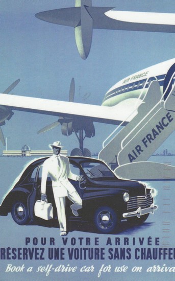 Cette affiche publicitaire datant de 1953 reproduite sur carte postale m’a fait réaliser que j’ai voyagé une seule fois sur les ailes d’Air France.