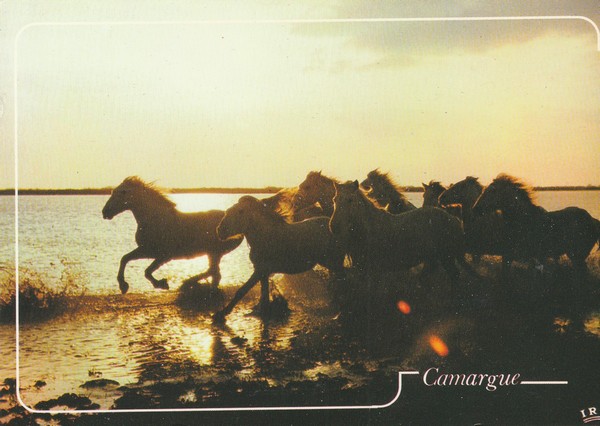 Une fois de plus, grâce à une carte postale, je remonte le temps. Cette fois, jusqu’à un jour de juillet 1981 où, après un arrêt aux Saintes-Maries-de-la-Mer, où nous avons eu la surprise et le plaisir d’entendre le guitariste Manitas de Plata, nous avons poursuivi notre promenade afin de voir un peu de la Camargue et ses célèbres chevaux. Moment inoubliable.