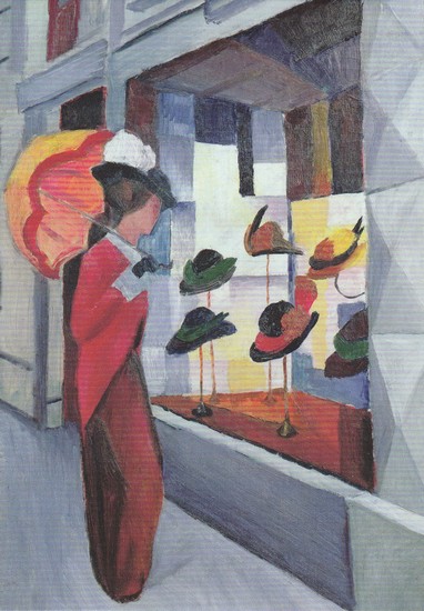 Un tableau d’August Macke, une carte postale choisie avec soin pour moi, l’arrière-petite-fille d’Eugénie, qui était chapelière.