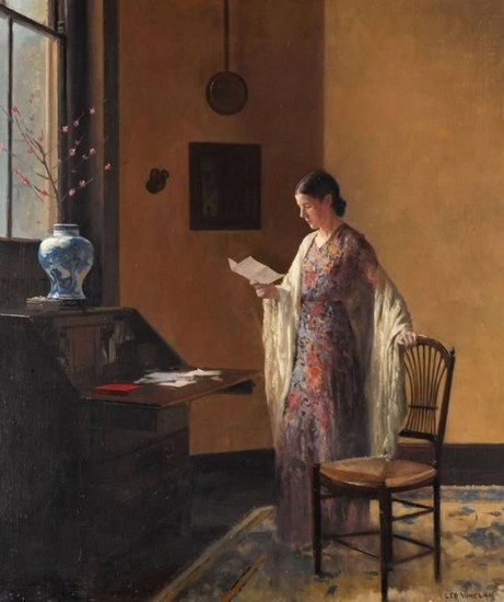 Mars. Enfin. Est-ce ce que se dit celle à qui est destinée la lettre qu’elle lit, tremblante, pleine d’espoir peut-être? À moins que ce soit des nouvelles moins ensoleillées? À vous de nous le dire, de raconter en vos mots ce que ce tableau peint par Leo Whelan suscite en vous.