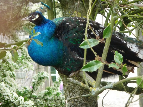 Je me demande si durant ses vacances Chantal croisera un paon qui voudra bien s’étaler un peu, bien que celui qu’elle a réussi à photographier est d’un bleu qui va en ravir plusieurs!