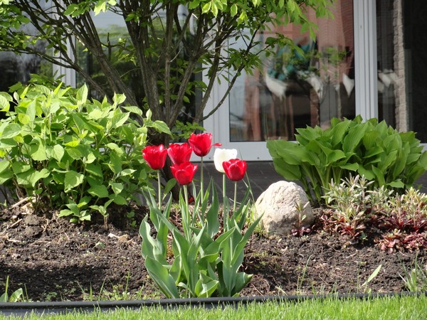 À moins d’un miracle les ayant épargnées de la pluie, du vent ou de la chaleur accablante de certains jours, voici les dernières tulipes de l’année, photographiées pas très loin de la maison, sur la route des courses.