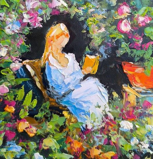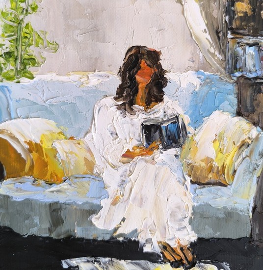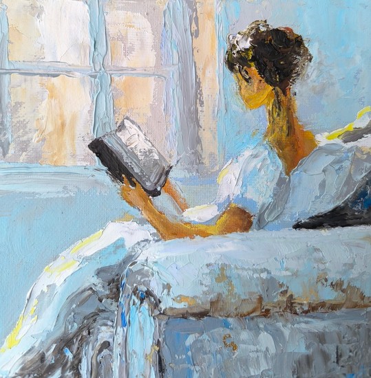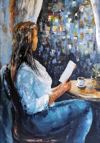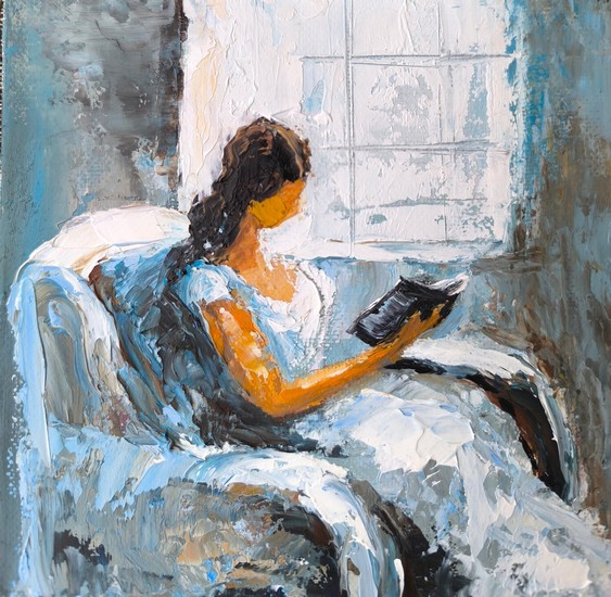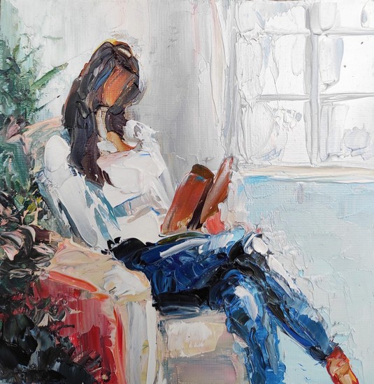 La lectrice Maria Slynko, qui vit en Espagne, a peint tant de lectrices qu’il y aura deux billets consacrés à celles-ci. Voici le premier.